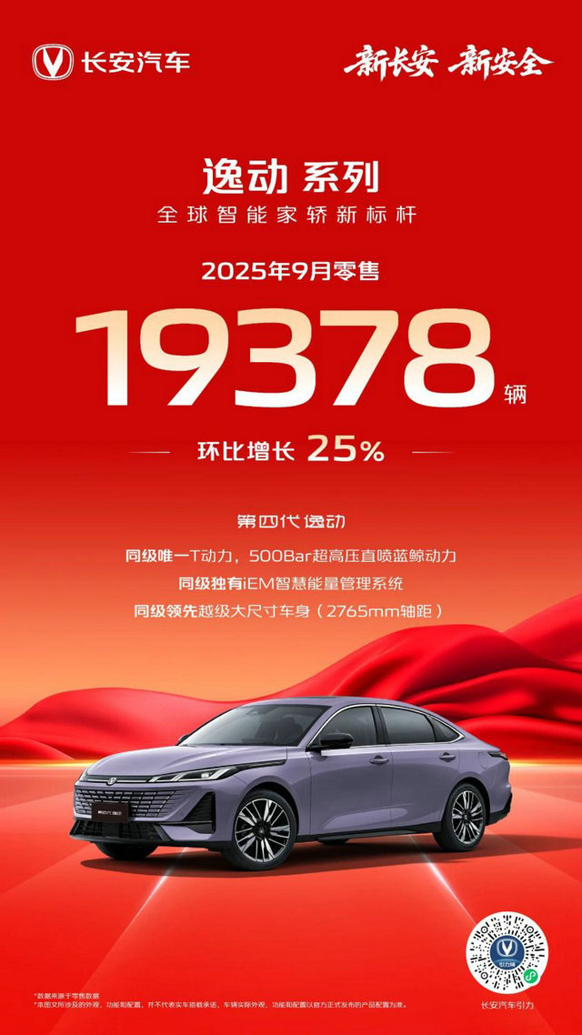 逸动系列:9月零售19378辆,全球智能家轿新标杆继续领跑市场
