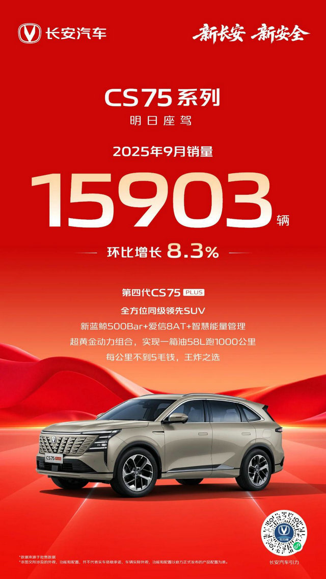 CS75系列:月销15903辆,“明日座驾”9月继续领跑市场